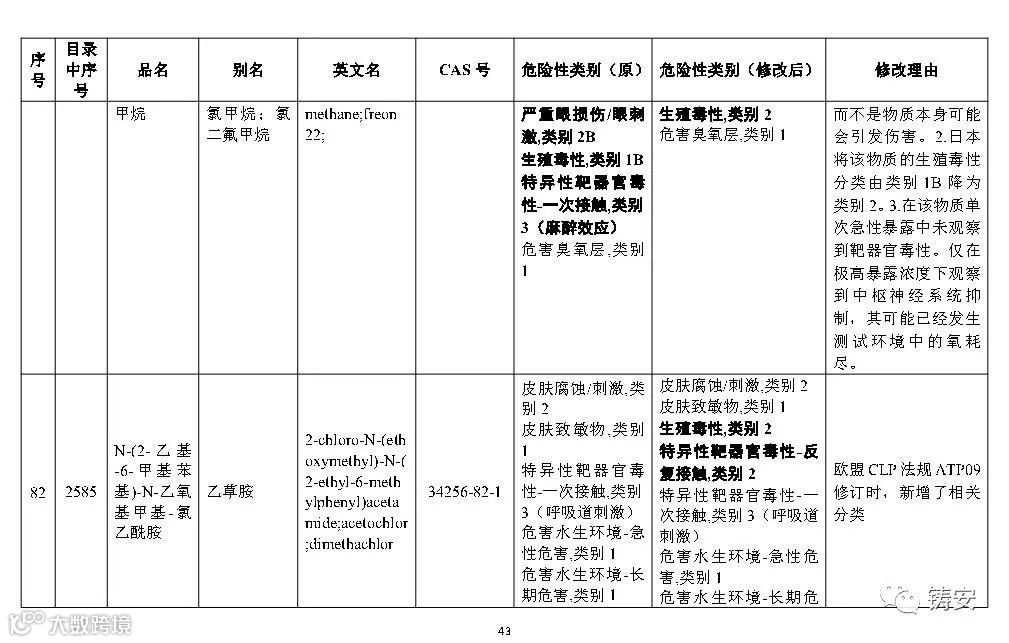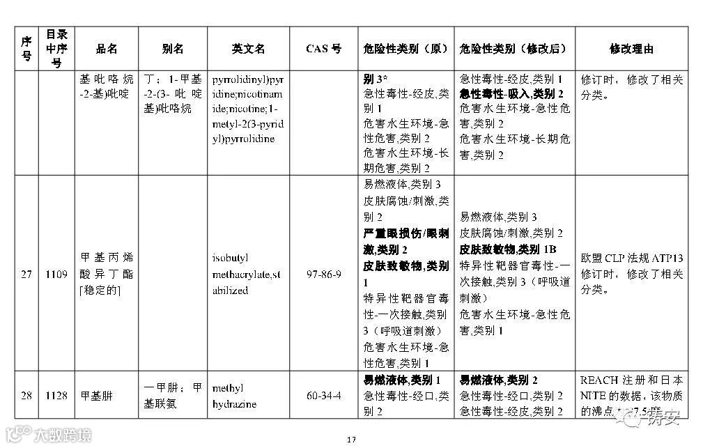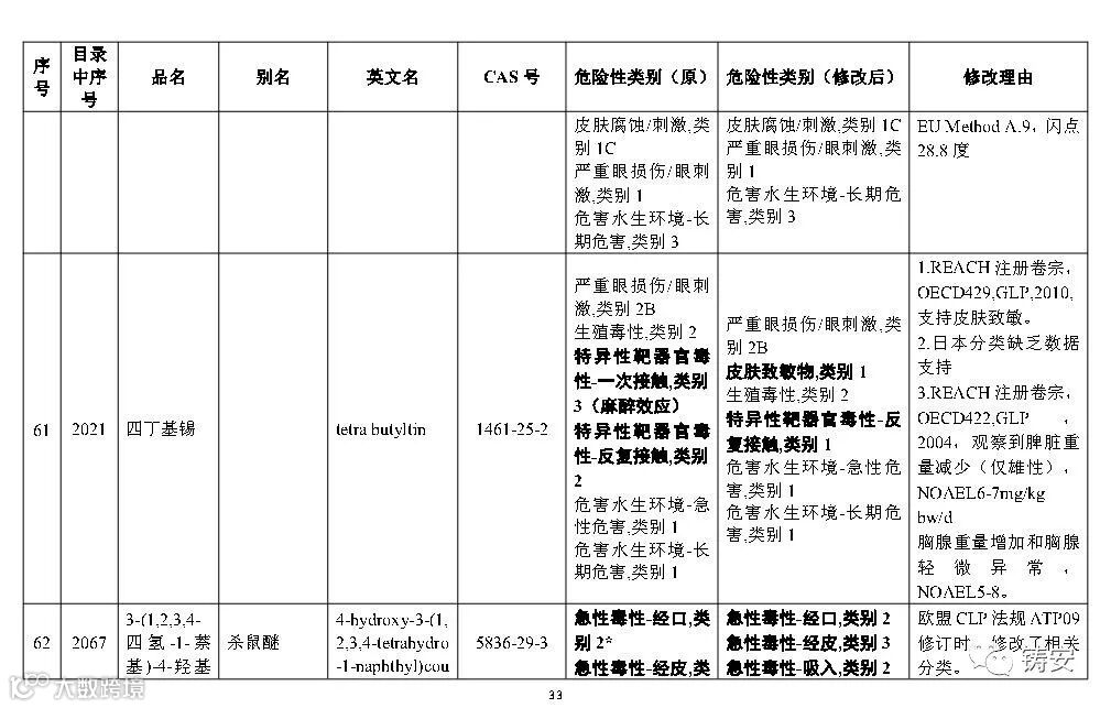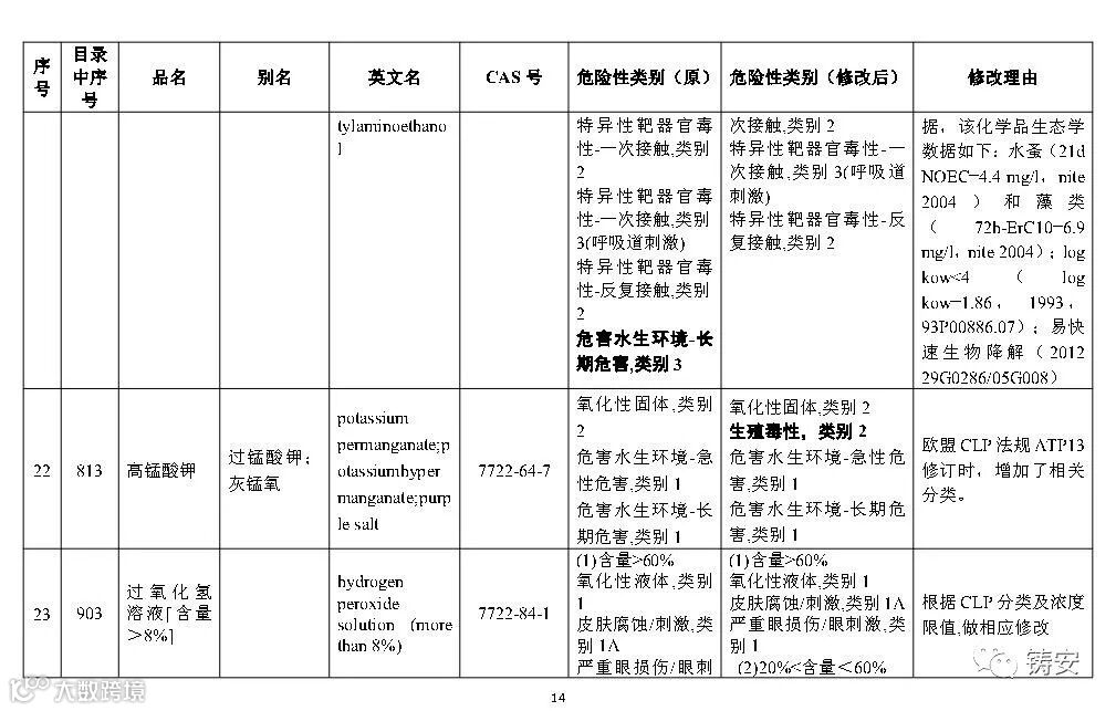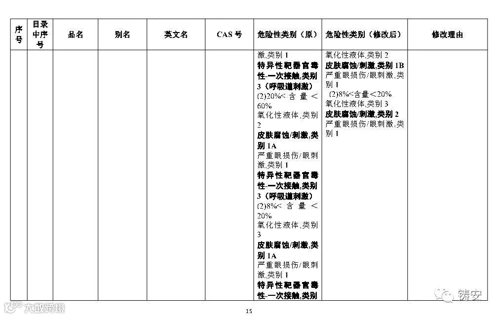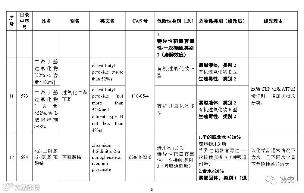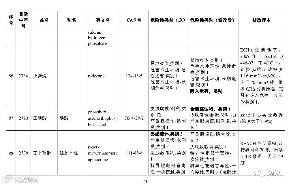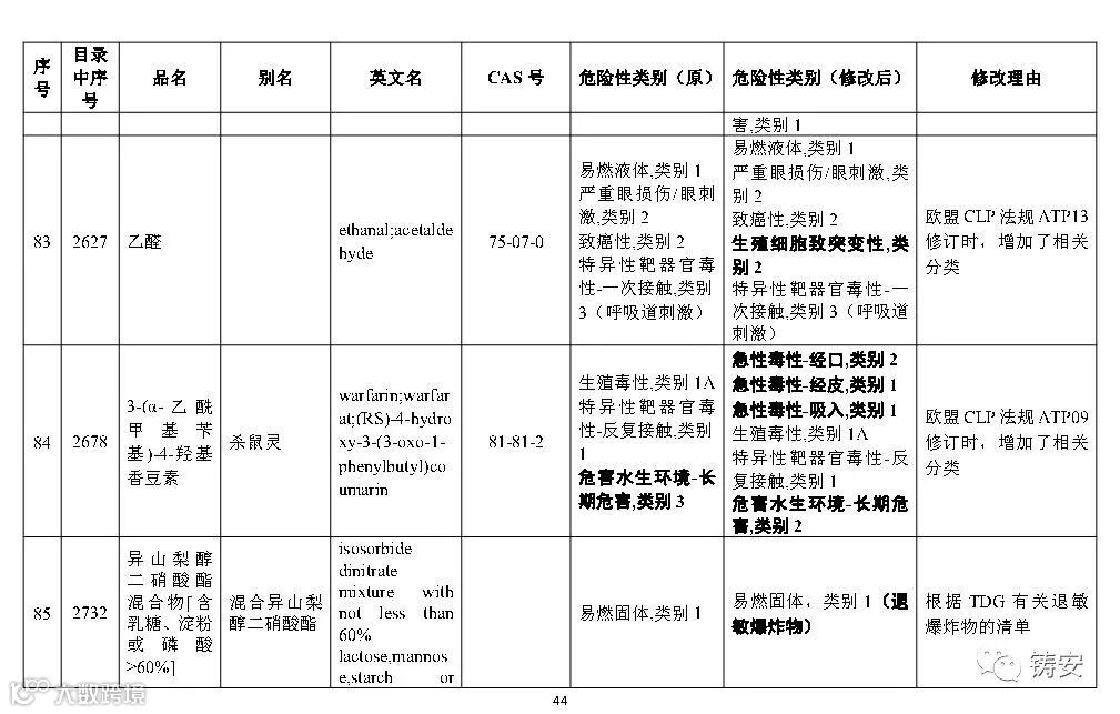 十二一、按照《危险化学品安全管理条例》第三条的有关规定,随着新化学品的不断出现、化学品危险性鉴别分类工作的深入开展,以及人们对化学品危险性等认识的提高,国家安全监管总局应急管理部等10部门将适时对《目录》进行调整,国家安全监管总局应急管理部将会适时对危险化学品分类信息表进行补充和完善。