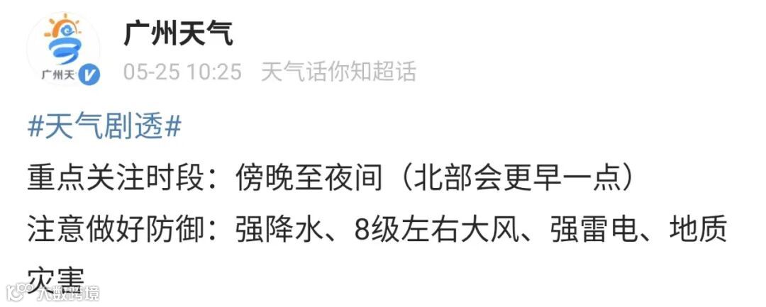 据会商研判,25-26 日,广东将出现今年第二场“龙舟水”,其中粤北和珠江三角洲市县有暴雨,部分市县大暴雨,粤东市县有大雨到暴雨,粤西市县有中到大雨,局部暴雨;雷雨时部分市县伴有7级~9级的短时大风。