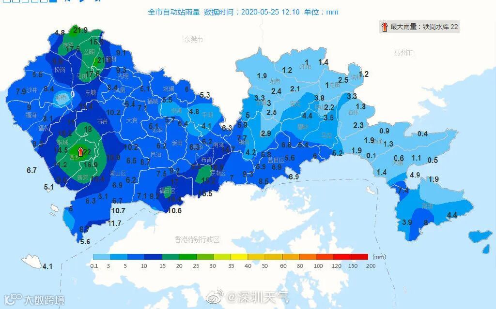 22日03时,广州黄埔区录得1小时全省最大降水量167.8毫米。22日00时30分至03时30分,东莞东城录得全省最大3小时降雨量351毫米。这两个数据均打破了广东 “龙舟水”期间的1小时和3小时历史极值。