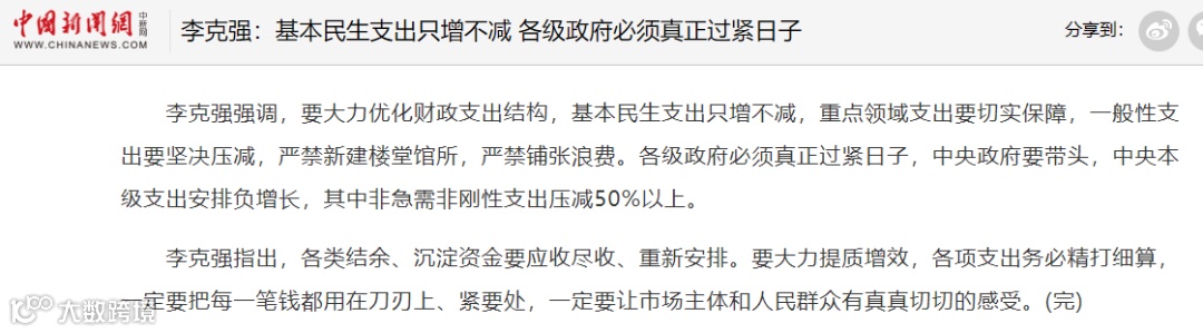 为了筹钱,总理都带头过苦日子,一口气把中央政府非急性刚性支出砍掉50%。