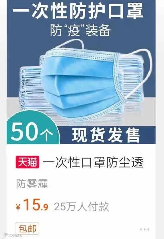 口罩价格也一落千丈,现在淘宝上,一次性防护口罩,零售价格已经最低能做到0.318元一个,还包邮。