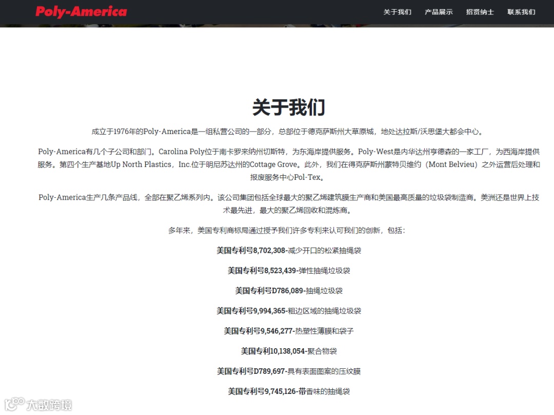 据该公司网站介绍,Poly-America公司多条产品生产线,均属于聚乙烯系列。该公司是世界上最大的聚乙烯建筑薄膜生产商和美国最高质量的垃圾袋生产商,也是世界上技术最先进、规模最大的聚乙烯回收商和合成商。主要产品包括垃圾袋、塑料布、特种薄膜、土工膜、农用薄膜、阻隔膜等。