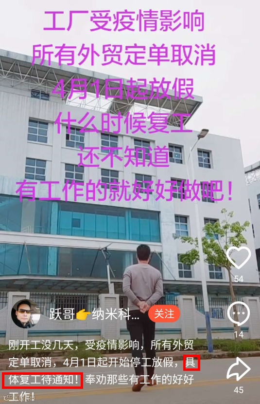 大批外贸订单取消,工厂放假,连锁反应@抖音平台爱跟随