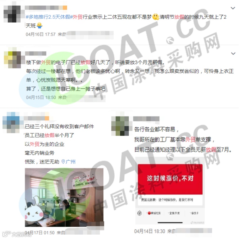 海外疫情冲击正影响着全球每一个末端,外贸行业则是首当其冲。一些企业取消了周六日加班,每周上班仅2-3天。由于前景不明朗,部分企业表示支持员工在放假期间辞职。多位外贸人士表示,他们开工后先做的是年前剩下的订单,然而后来发现货无法运出去,同时在无新单的情况下,企业只能停工停产来止损。相对于跑路、破产、裁员、解散,“放假”可能是个不错的结果,但这种漫长的等待无异于钝刀子割肉,是一种持续性的焦虑和疼痛。