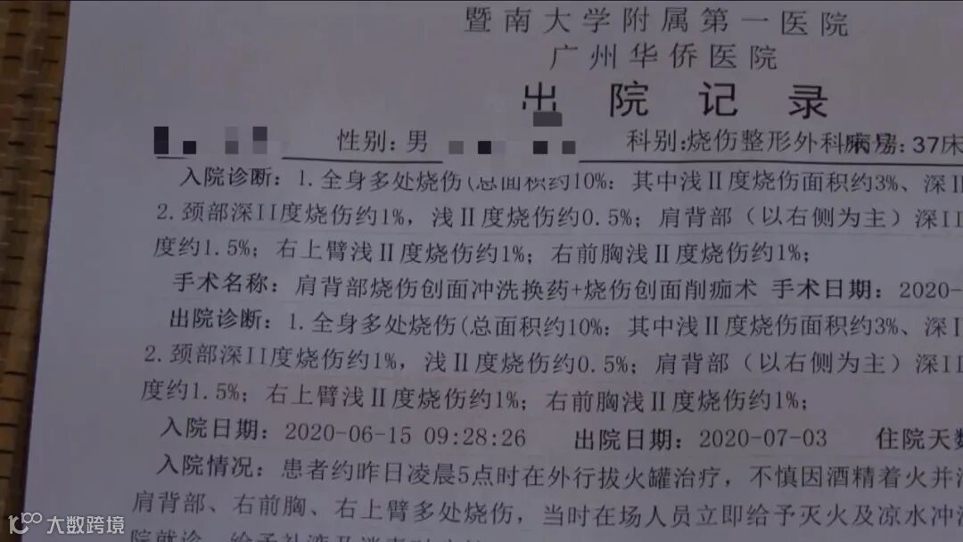 而就在进行拔火罐项目时,恐怖的事情发生了。郑先生的背部突然着起火来,全身多处烧伤!