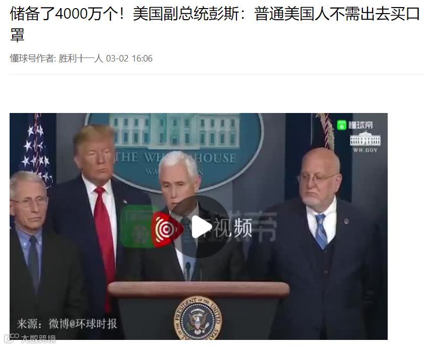 而最近美国防疫总指挥彭斯也站出来稳定民心,