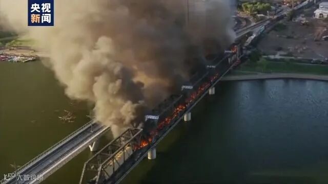突发丨美国一载有危化品列车脱轨起火,部分车厢压塌铁路桥