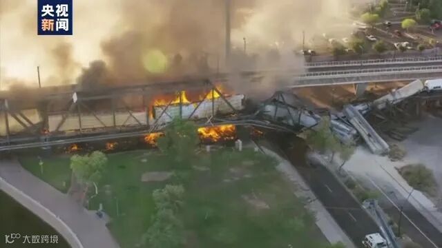 导读:据央视新闻客户端消息,一列货运火车当地时间29日早晨在美国西南部亚利桑那州坦佩市经过一座铁路桥时脱轨引起大火