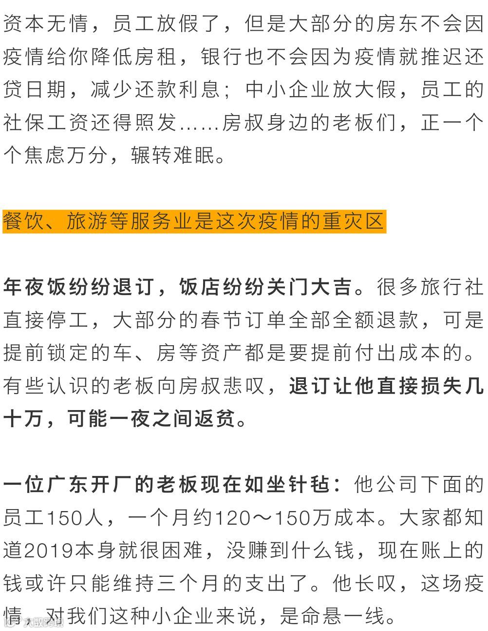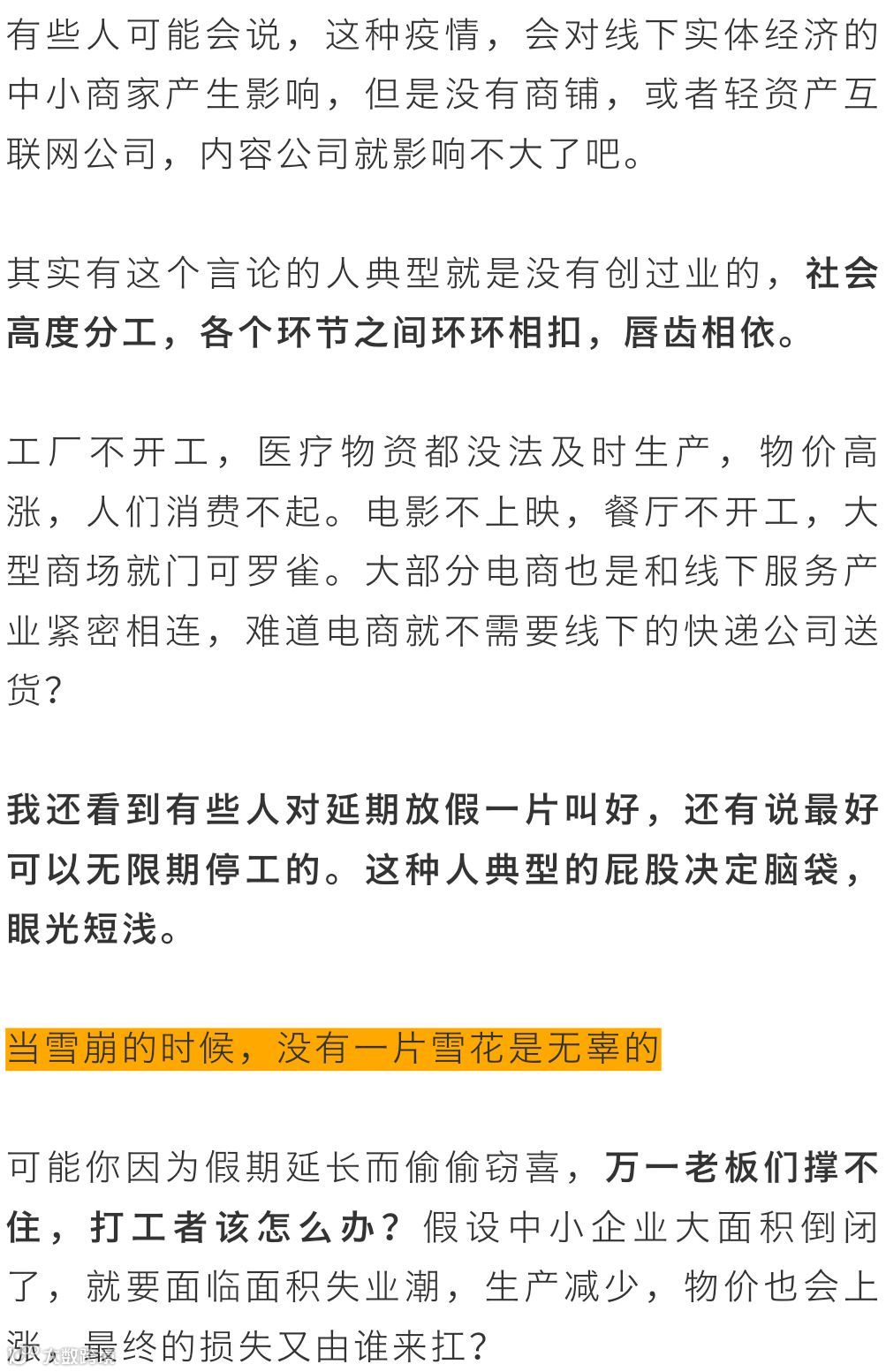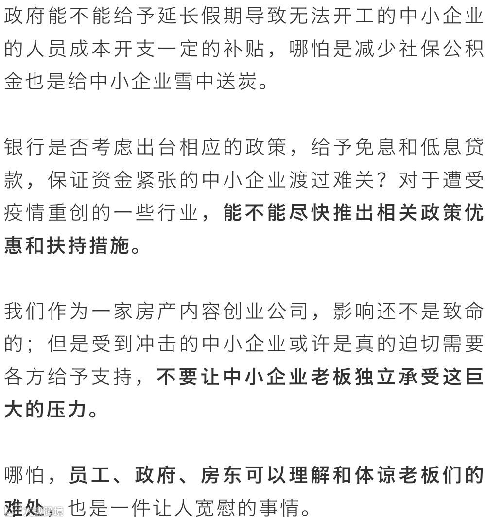 中小企业承担了80%的就业机会,可以说,在中小企业身后站着的是千千万万的家庭,假设老板们撑不过这个疫情,那么后果不堪设想。