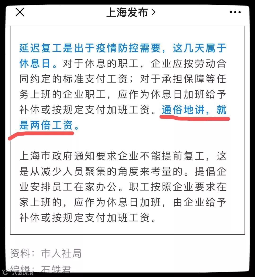 为了防护疫情各地要求企业延长春节假期,并正常支付工资,这当然是可以理解的。而让人不解的是:上海规定2月10号之前属于休息日加班要给双倍工资。