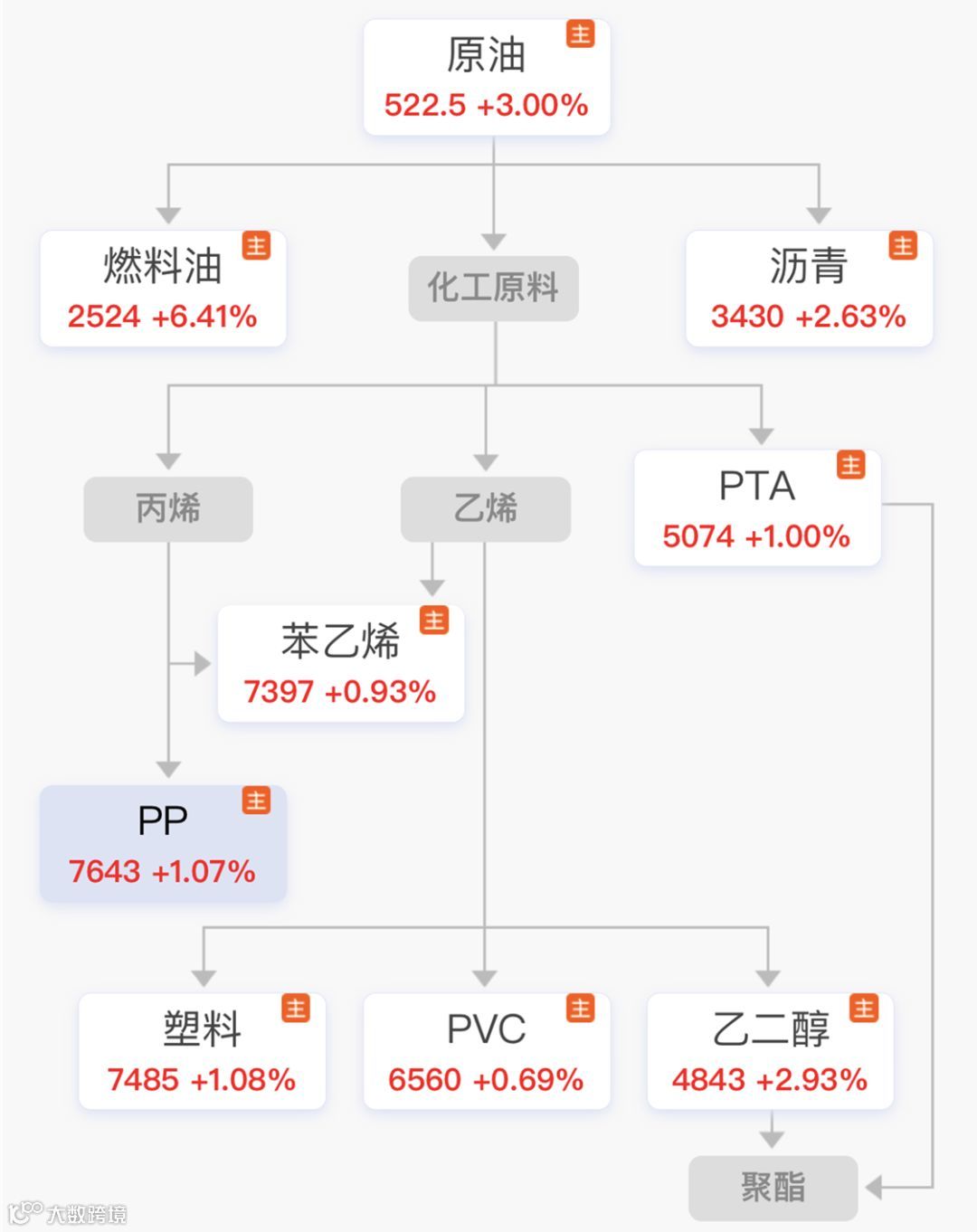 原油对于化工生产来说,无疑是最基本原材料。原油的价格决定了化工产品的基础成本。原油的强势上涨,也带动了化工市场的全面飘红!