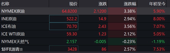 外盘商品,WTI原油涨3%,一度涨超4%。