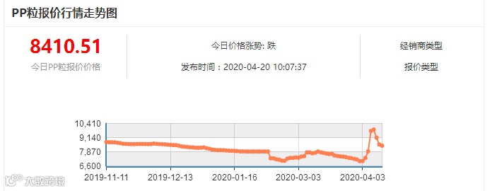 随着江苏扬中等地区有关部门对劣质口罩生产商的大力整顿,业界对口罩用聚丙烯材料的科普扩散,聚丙烯市场逐步回归理性。今日PP粒报价8410.51元/吨,从9731元高位上暴跌上千元。