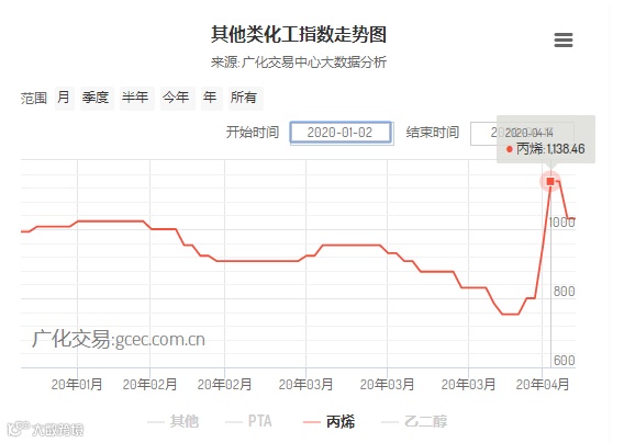 聚丙烯上游的丙烯价格也随着原油的暴跌及口罩市场降温下,丙烯价格随之而降。