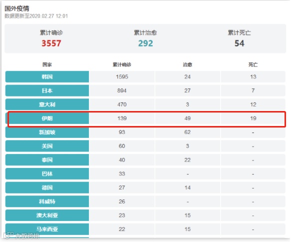 从2月19日,伊朗确诊首例新冠感染病例,到25日,伊朗卫生副部长Iraj Harirchi确诊感染新冠病毒,而就在前一天,他出席了有关疫情的新闻发布会和电视访谈,多次咳嗽擦汗,全程未戴口罩。当天稍晚,伊朗国会议员马哈默德萨德吉也宣布确诊再到26日确诊139例,每日都有死亡病例,伊朗疫情传播速度之快,也是让人始料未及的。