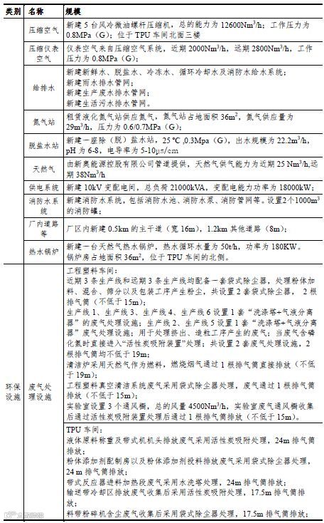 项目主要新建工程塑料装置、热塑性聚氨酯装置及配套公用工程,生产能力为年产16万吨工程塑料、3.2万吨/年热塑性聚氨酯。