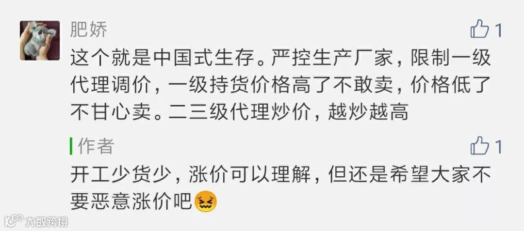 现在打部分的情况是,经销商复工了,但厂家还未复工,一时间化工品的零售价格猛然上涨。货少需求大,价格上涨能够理解,但有料君还是呼吁各位同行,切莫恶意涨价。