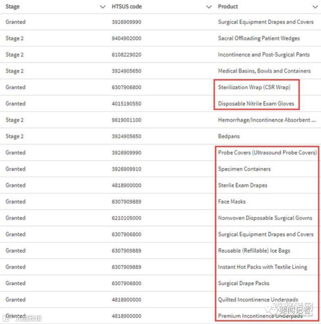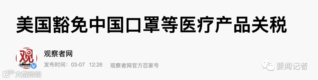 1.美国对中国口罩等医疗产品豁免关税
