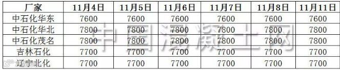11月4日-11月11日环氧乙烷报价(单位:元/吨)