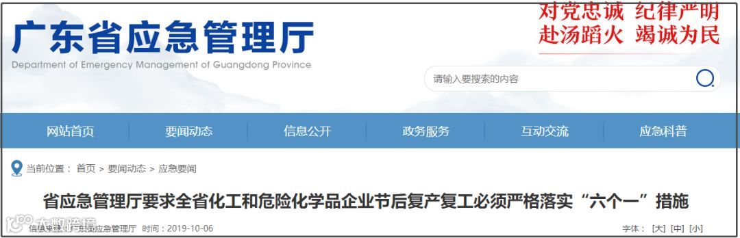 广东省应急管理厅要求,全省化工和危险化学品企业董事长、总经理等主要负责人、分管安全负责人和安全管理团队必须在岗在位,严密组织做好复产复工安全工作,确保万无一失。