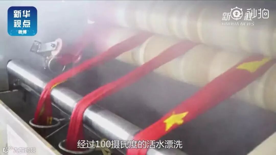 蒸化结束后,五星红旗还需要经过100摄氏度的活水进行漂洗,将表面的浮色洗净。