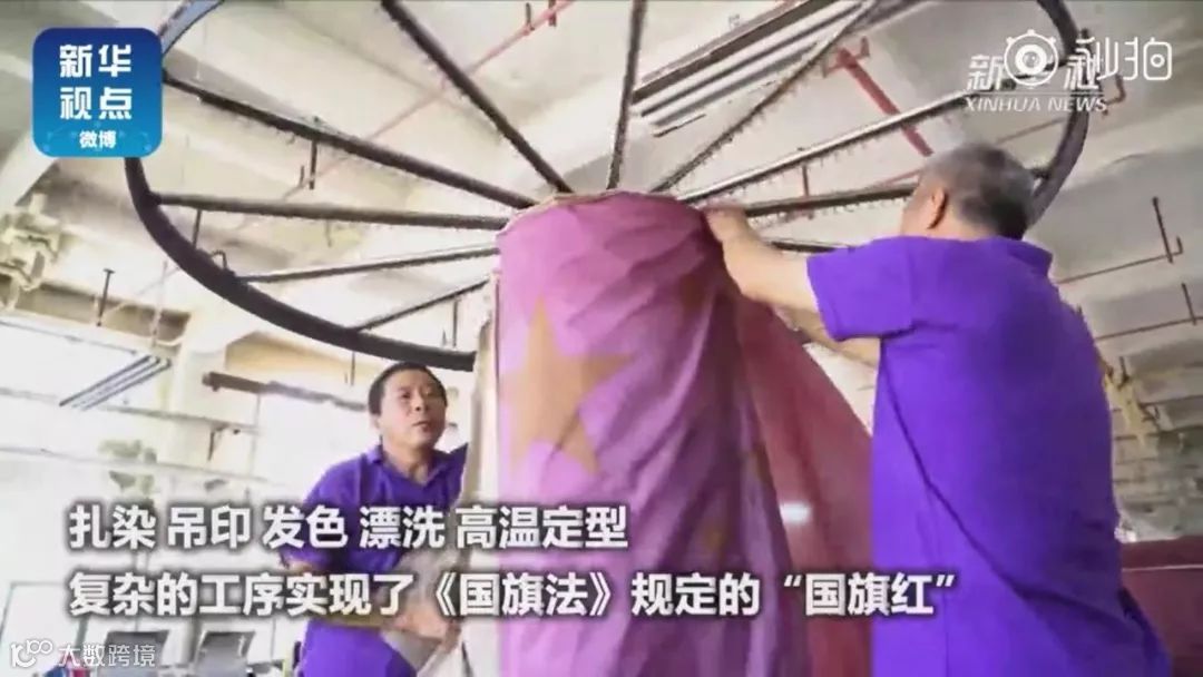 扎染、吊印、发色、漂洗、高温定性,复杂的工序只为实现《国旗法》规定的“国旗红”。