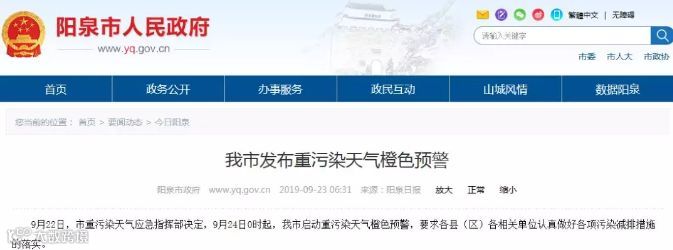 廊坊:自2019年9月24日0时起发布重污染天气橙色预警并启动Ⅱ级应急响应,预警解除时间另行通知。