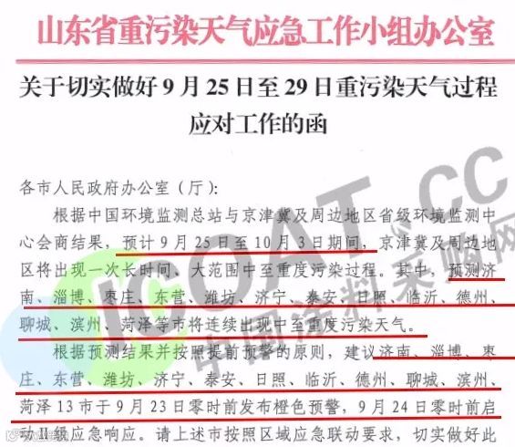 淄博:9月23日0时0分发布重污染天气橙色预警,9月24日0时0分启动II级应急响应。