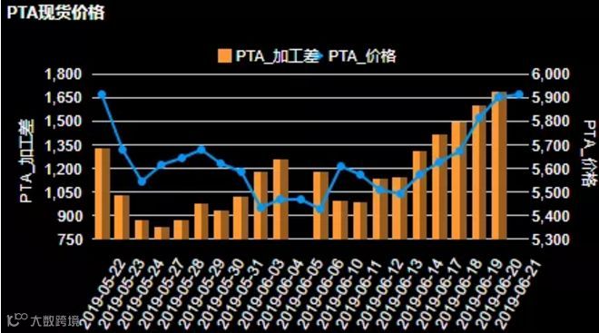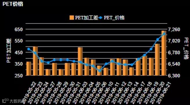上周PET涨幅接近500,加工差达到600+,动能为明显上涨趋势。