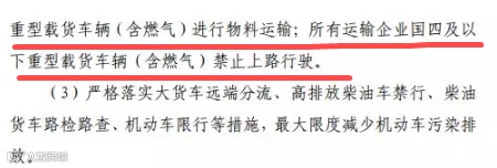 10.港口、物流(除民生保障类)等涉及大宗物料和产品运输(日常车辆进出量超过10辆次)的单位停止使用国家第四阶段及以下重型载货汽车(含燃气)进行运输(特种车辆、危化品车辆等除外)。