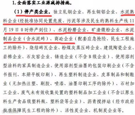 工业企业必须严格落实新修订的应急减排措施清单中停限产措施,建材行业全部停产(包括水泥行业、采石采砂行业等),涉保障民生供热任务的工业企业严格执行以热定产、以气定产;供应重点工程物流的工业企业严格按照《关于重污染天气允许重点工程项目施工建设的复函》执行以量定产要求。
