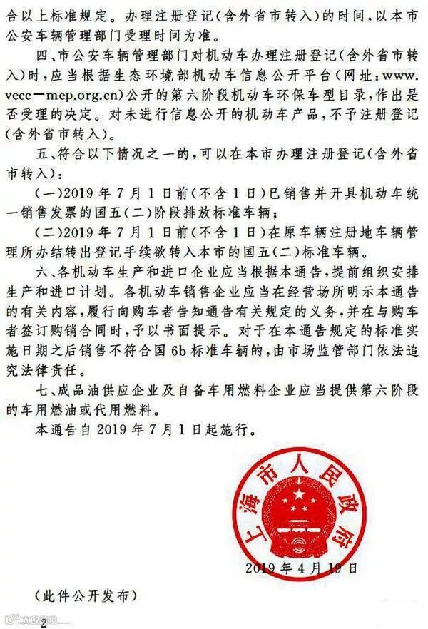 《通告》要求,自2019年7月1日起,在济南市行政区域内进口、销售和注册登记的新生产轻型汽车应当符合国家6a或6b阶段排放标准要求;停止进口、销售和注册登记达不到国家6a阶段排放标准的新生产轻型汽车。