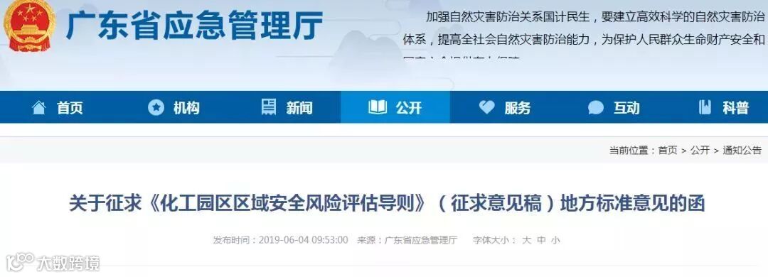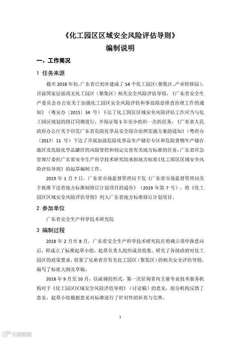 6月4日,广东省应急管理厅官网发布《化工园区区域安全风险评估导则》(征求意见稿)(以下简称“征求意见稿”)。