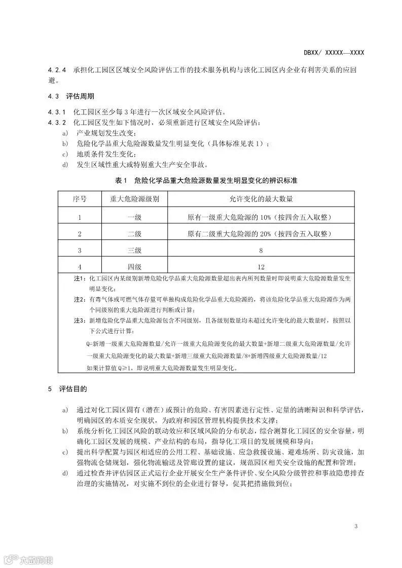 征求意见稿明确提到,化工园区至少每3年进行一次区域安全风险评估。值得注意的是,当化工园区出现产业规划改变、危险化学品重大危险源数量发生明显变化、地质条件变化、发生区域性重大或特别重大生产安全事故等情况时,该化工园区必须重新进行区域安全风险评估。