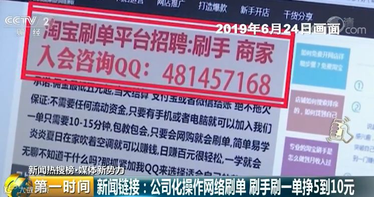 公司化操作网络刷单 刷手刷一单挣5到10元
