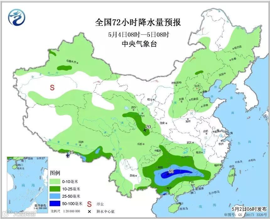 以下是中央气象台发布的4-8日的降水量预报,