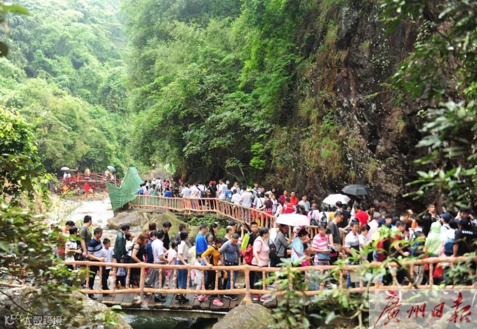 2日,增城白水寨景区迎来了小高峰。当天的濛濛细雨也没能阻挡游客的步伐,反而更增添了不少乐趣。记者 乔军伟 摄