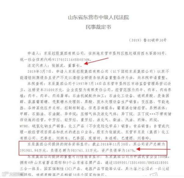 继大海集团、胜通集团之后,山东省东营市又公布了另一家曾经的民企500强进入破产重整程序的消息,这次,是东辰控股集团有限公司(以下简称“东辰集团”)。