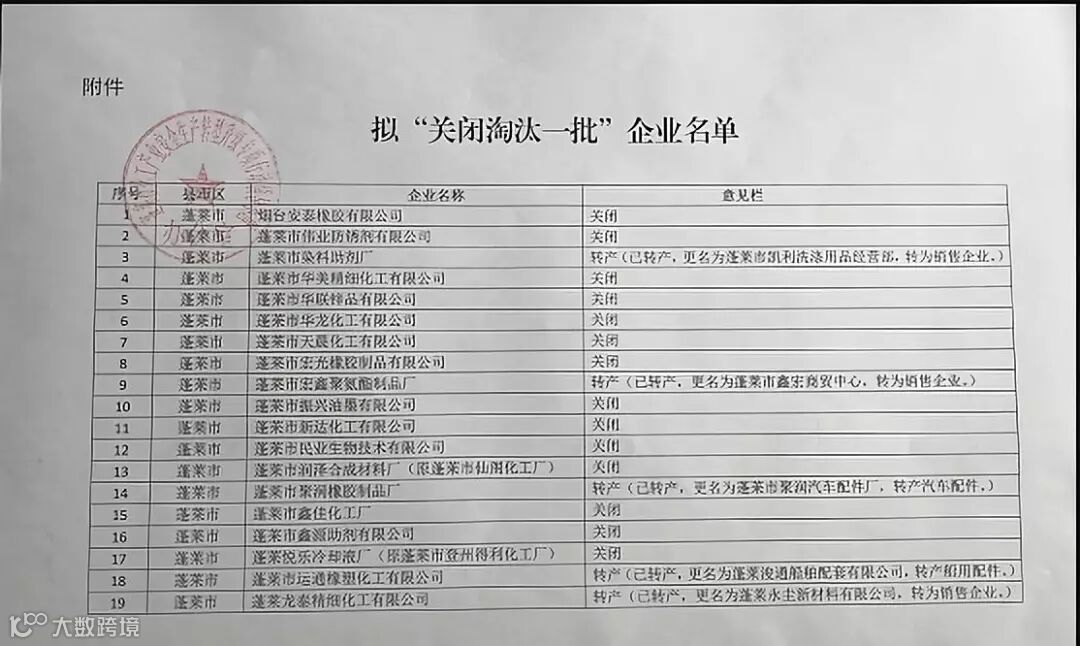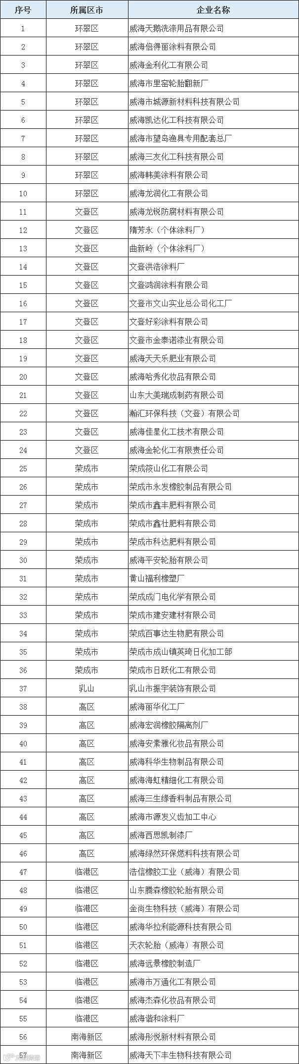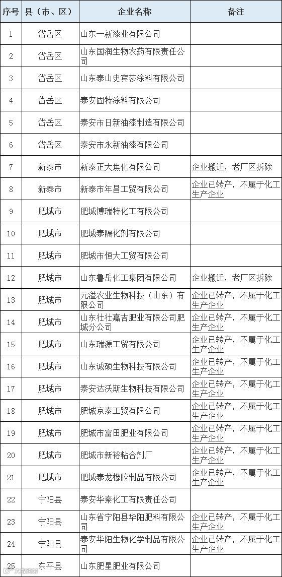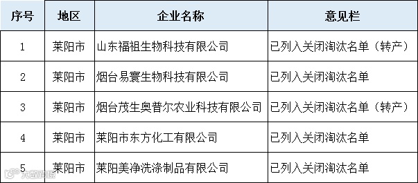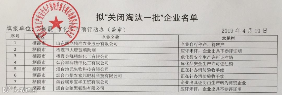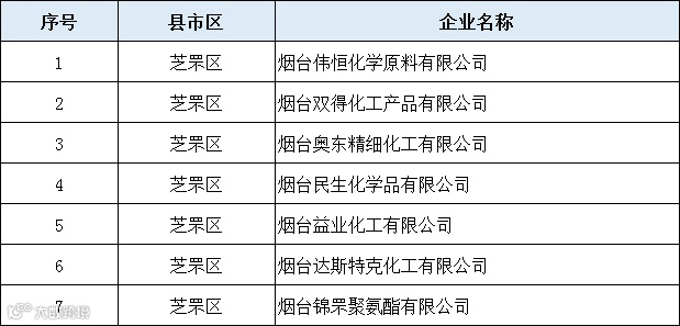 2. 芝罘区“关闭淘汰”化工生产企业名单公示