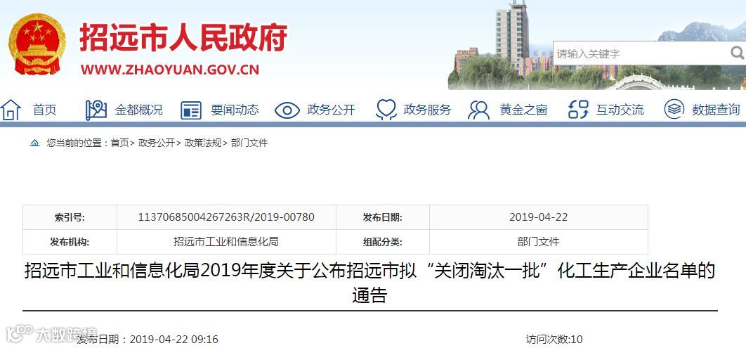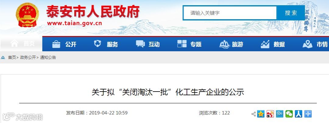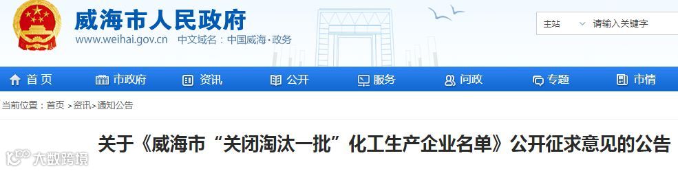 日前山东省泰安、莱阳、威海、招远、淄博、济南、烟台等市、区分别发布关于拟“关闭淘汰一批”化工生产企业的公示通知。