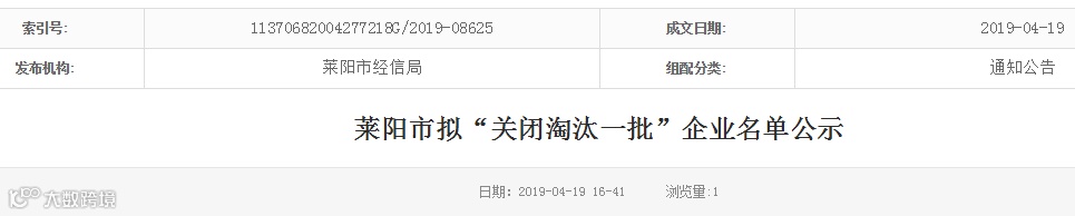 1. 临淄区:关于公示拟“关闭淘汰一批”企业名单的通知