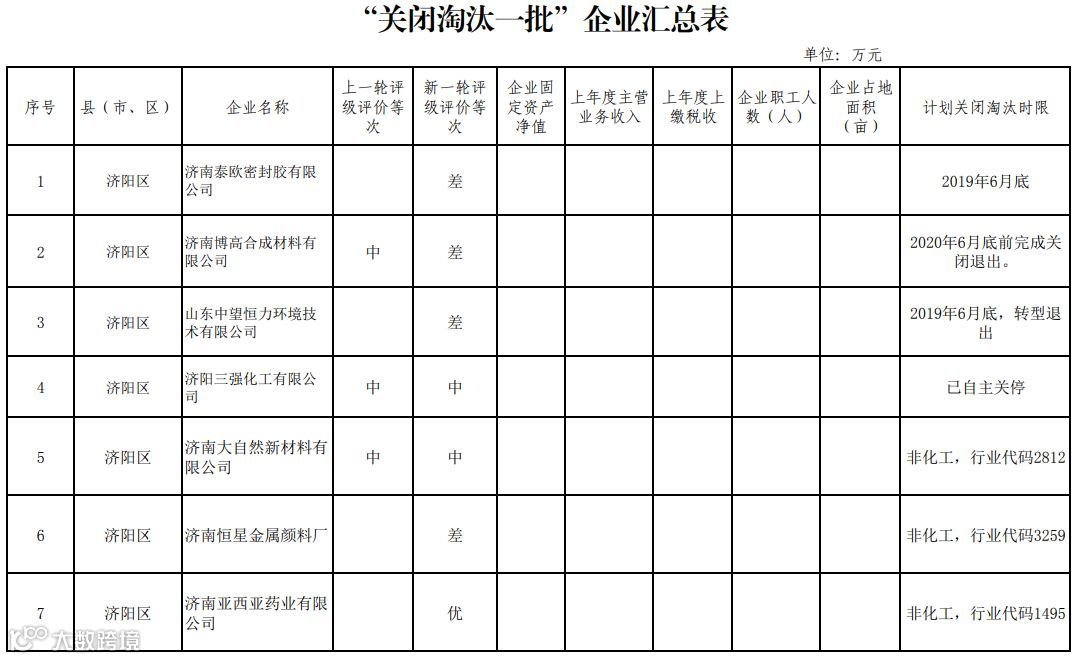 1. 济南市济阳区化工企业“三个一批”名单公示