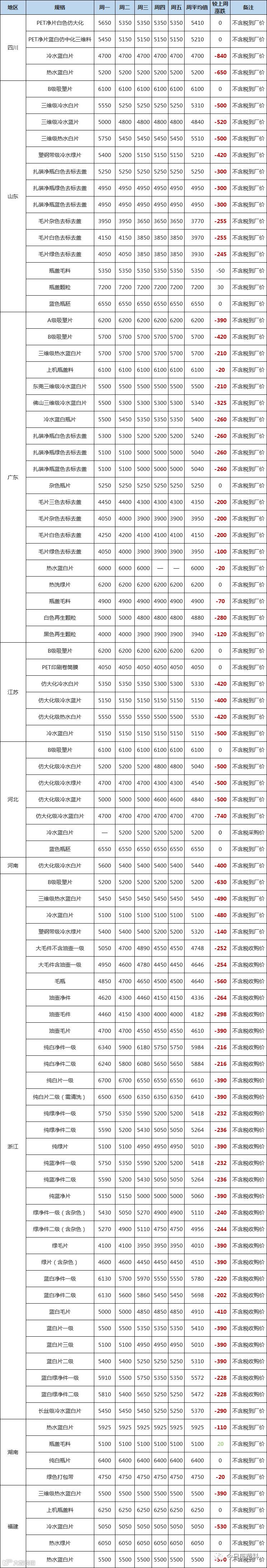 2019年新料市场库存消化缓慢,在刚需转淡后期报盘不断下行,给予回料市场压力持续加大。5月份以来新料T30无税最低仅7720元/吨,而PP白透明一级颗粒最高却在7300元/吨,两者500元/吨的价差导致回料替代作用一度减弱,市场交易进入停滞状态。价差缩窄后回料报盘被动下行,目前跌至6900元/吨。