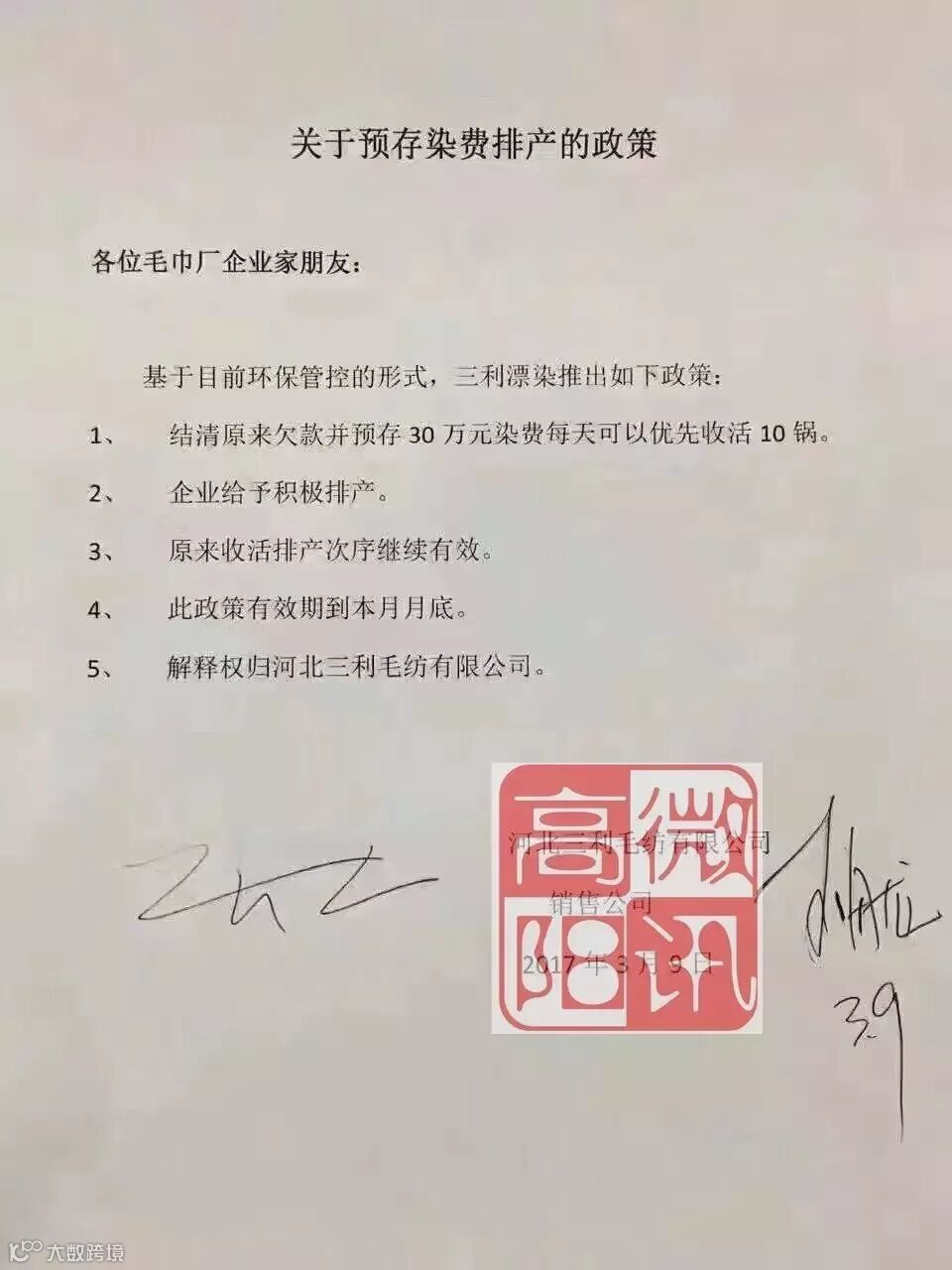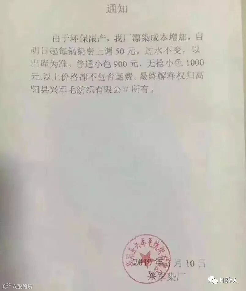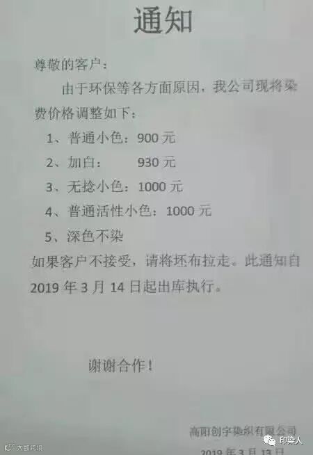 还记得2年前高阳印染企业预存染费排产的通知,当时轰动全国印染行业,很多人当时感觉这是不可能的事情。