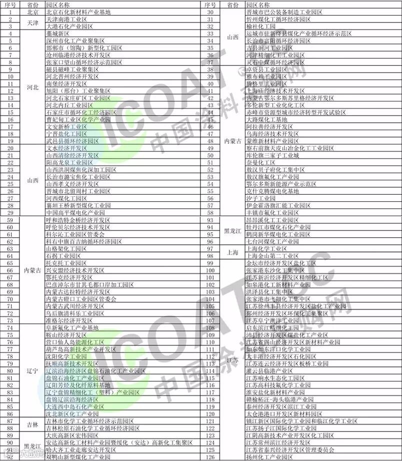 部分化工园区名单如下: