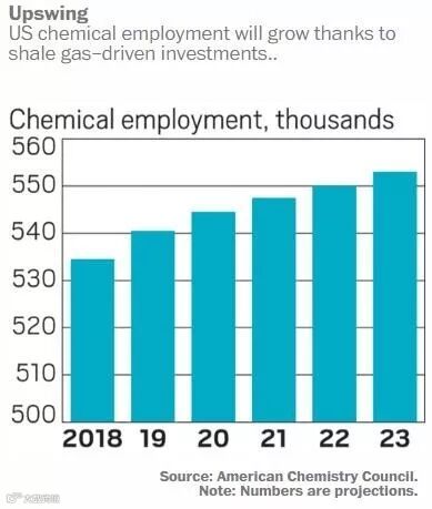 Kevin Swift指出,新的化学设施进入利用页岩气热潮,制造业所使用的化学品需求会增高,产能也会相应增加。ACC预计美国化学品产量(不包括药品)今年将增长3.6%,高于强劲的2018年,去年增长率为3.1%。