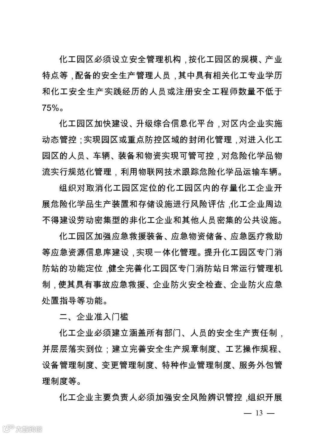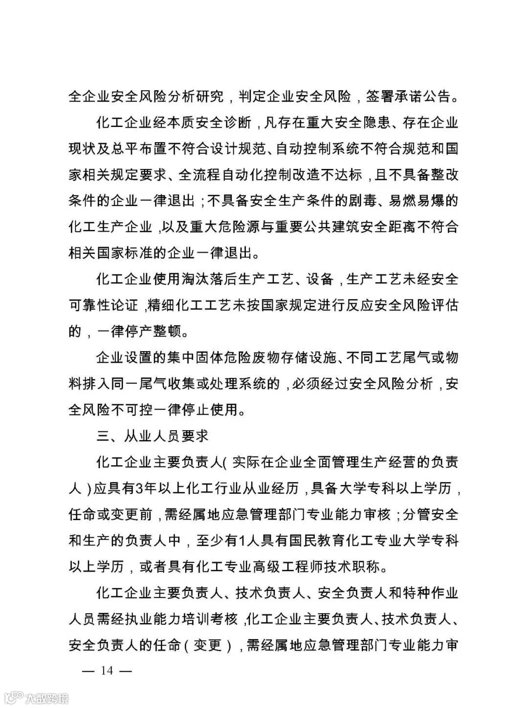 被取消化工园区定位的区域,严禁再新建化工项目,要严格管理、坚决关闭高燃、易燃易爆、安全环保不达标的化工企业,逐步关闭或搬迁其它化工企业。