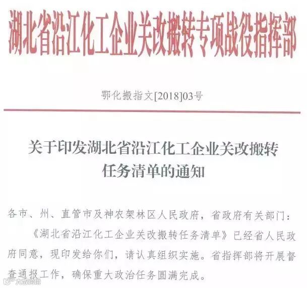 湖北:478家沿江化企需按时搬转入园!