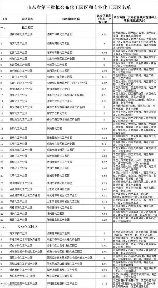 山东:29+9化工园名单