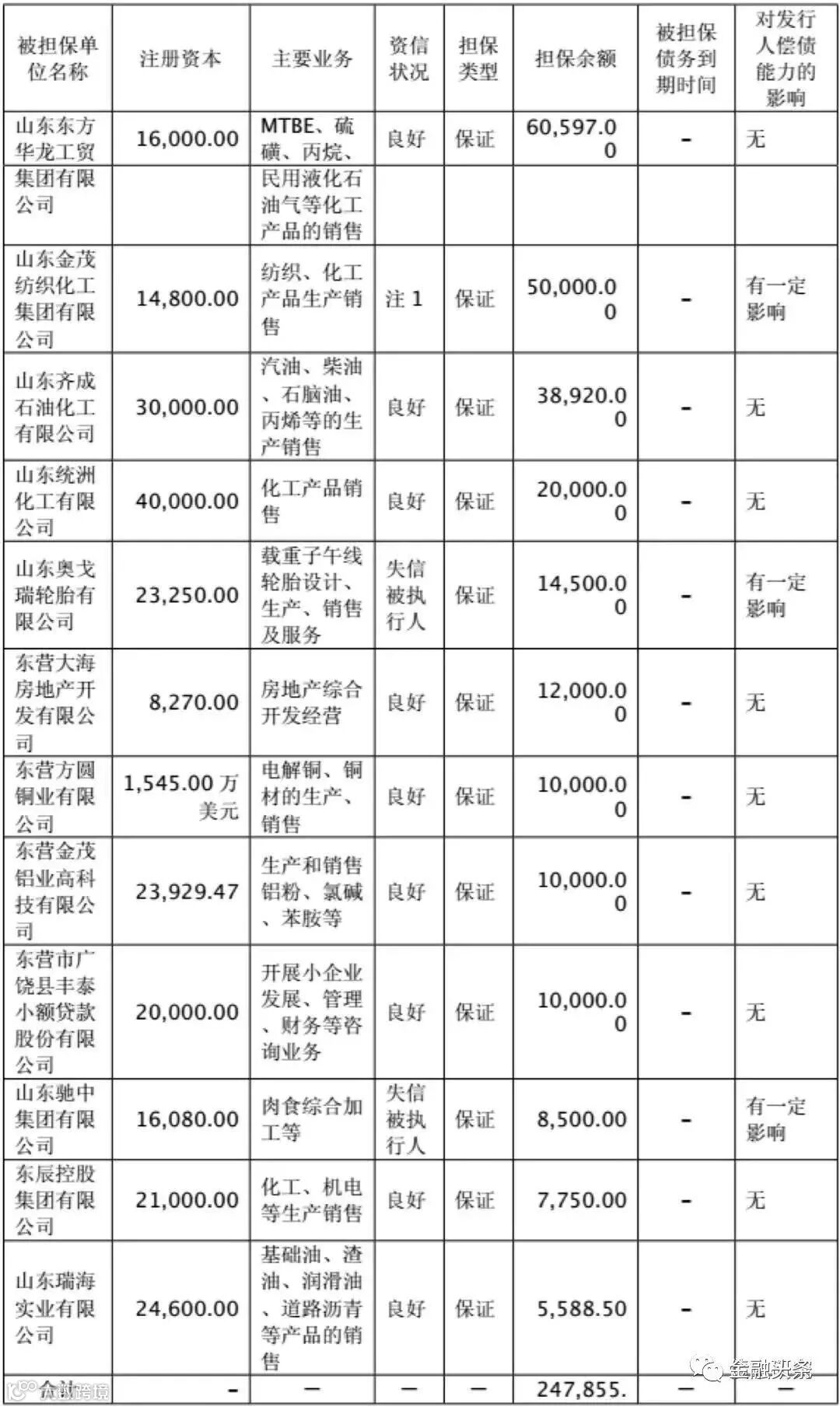 另外,对外担保企业区域均集中在东营市及周边县市, 且企业间互保关系严重,存在较大代偿风险。